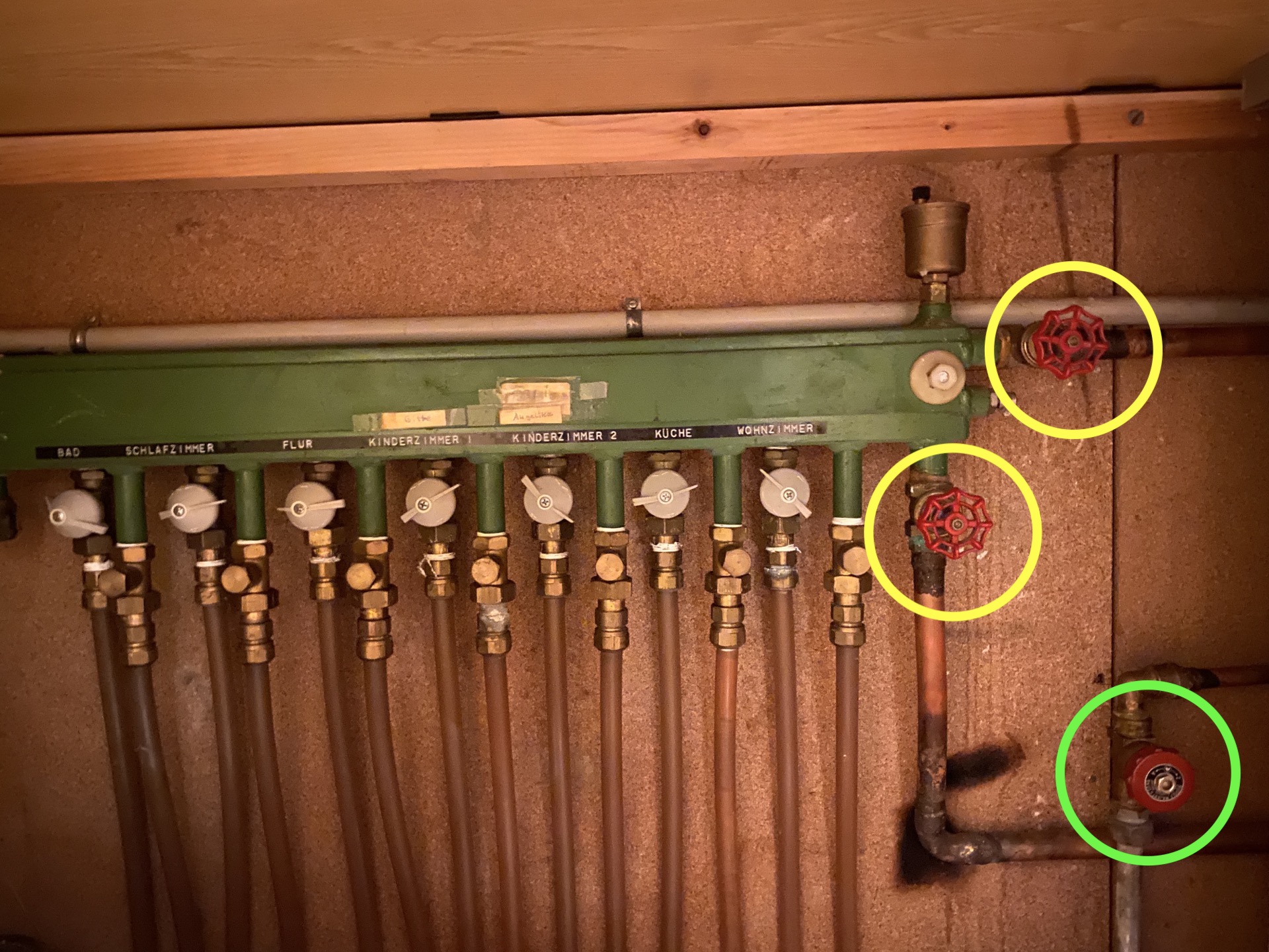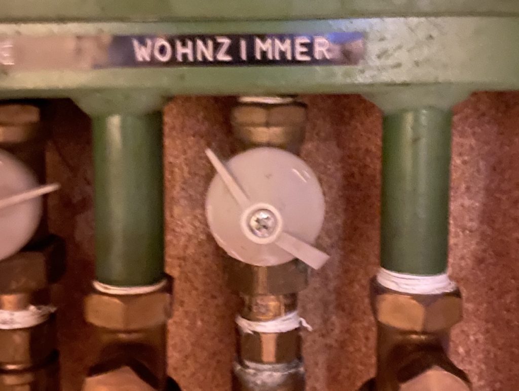 Die Hähne befinden sich in der Küche im Schrank links von der Heizung.